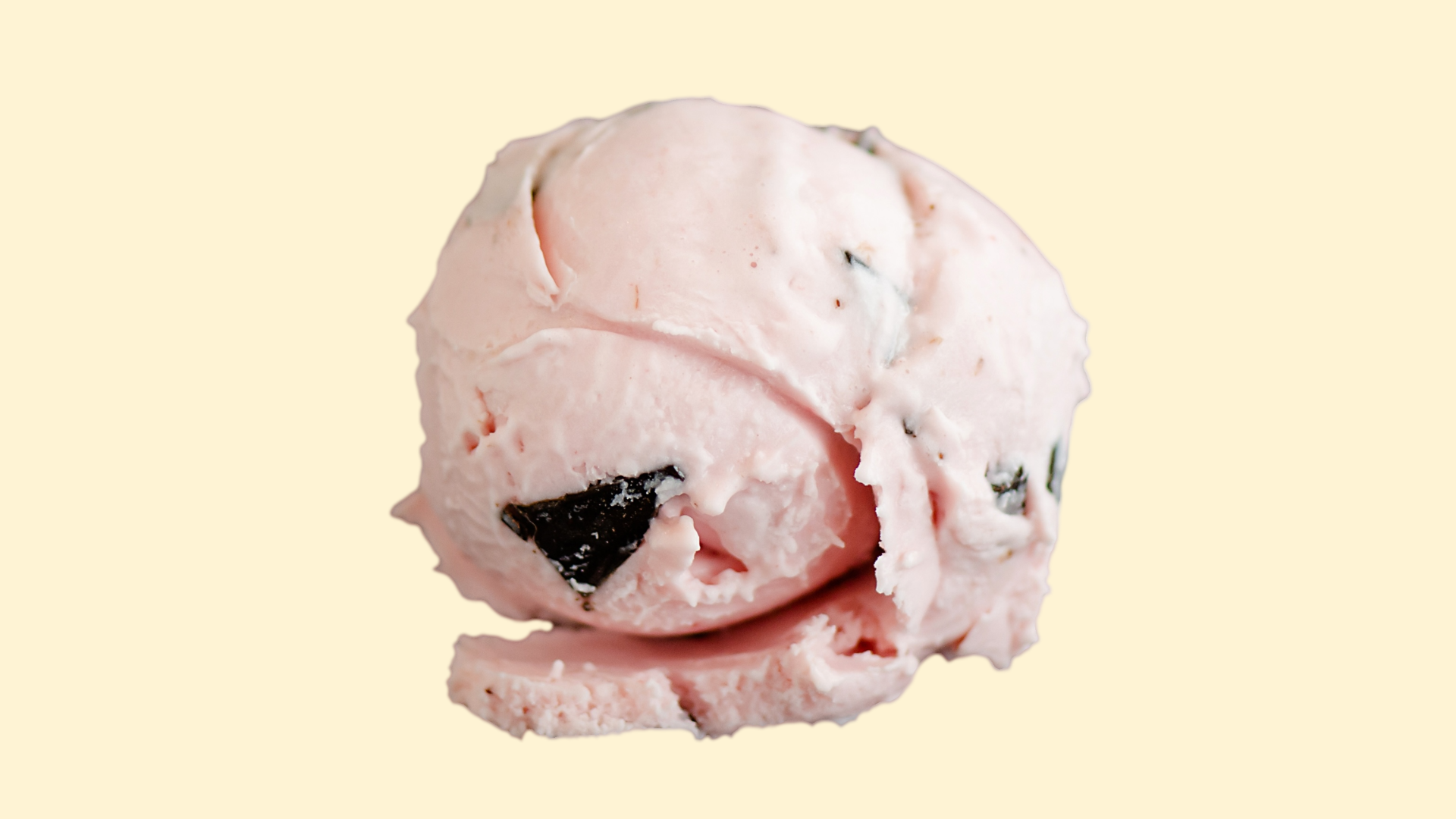 Smooth Strawberry ice cream with rich chocolate chips.