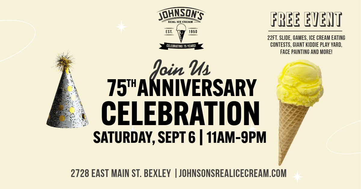 BEXLEY, OHIO – (Aug 8, 2025) – For 75 years, Johnson’s Real Ice Cream has been woven into the fabric of Central Ohio — powered by the friendships, family traditions and local partnerships that turn each scoop into a shared celebration. To honor the community whose loyalty has sustained four generations of ice-cream making, Johnson’s will host a free block-party-style celebration from 11 a.m. to 9 p.m. Saturday, Sept. 6, at its original Bexley location.